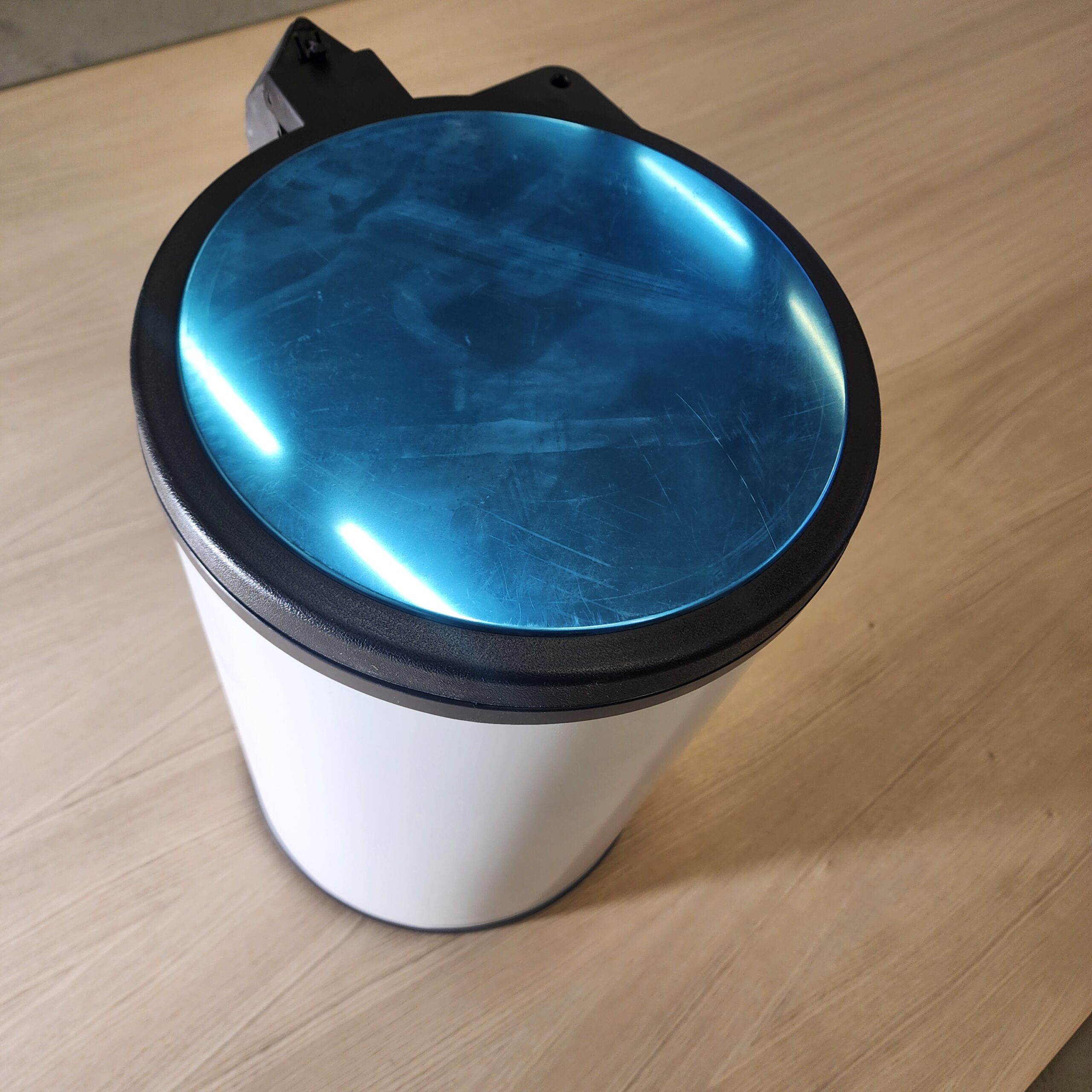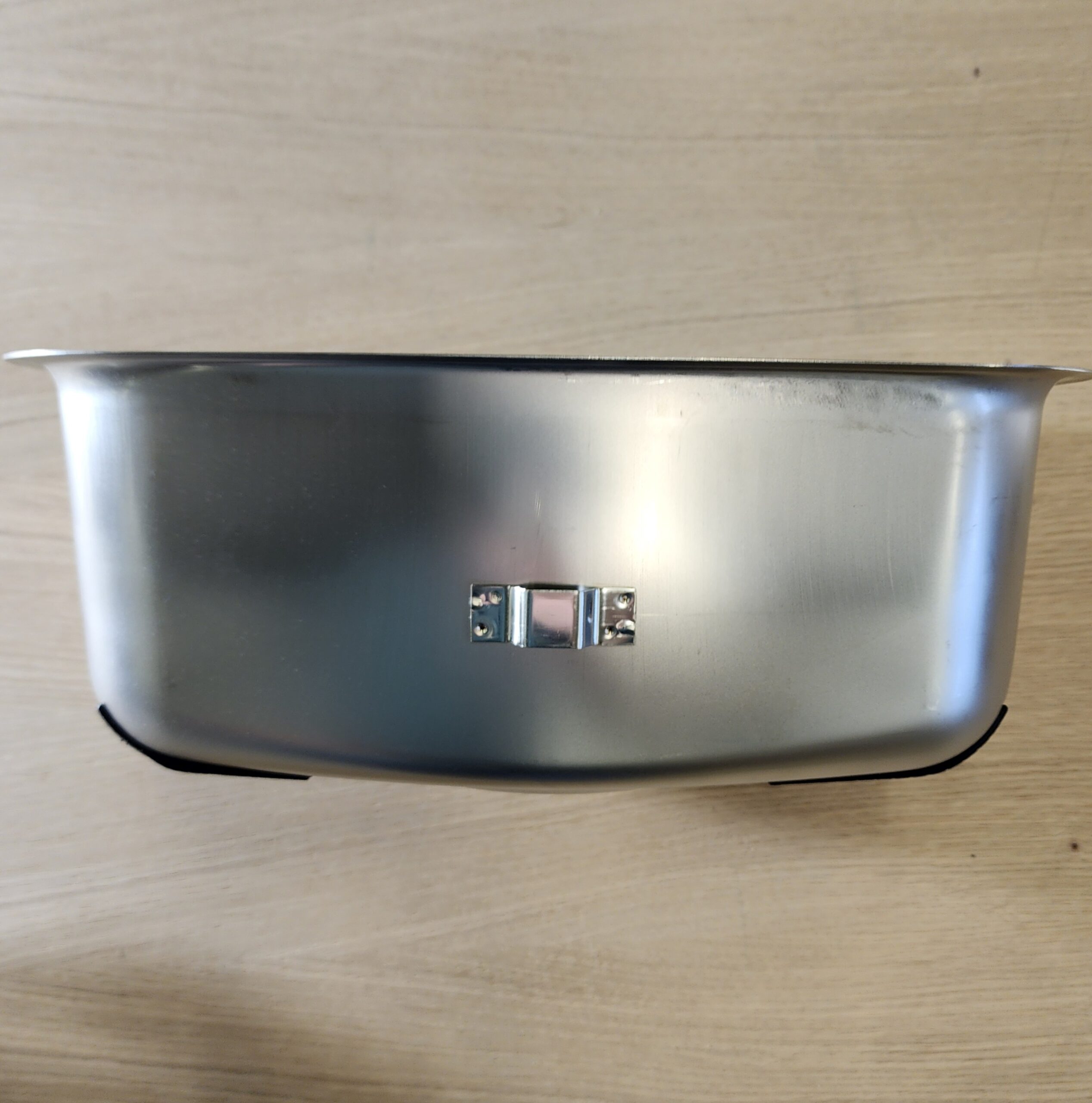 Kuvassa teräskannen päällä on sininen suojakalvo.