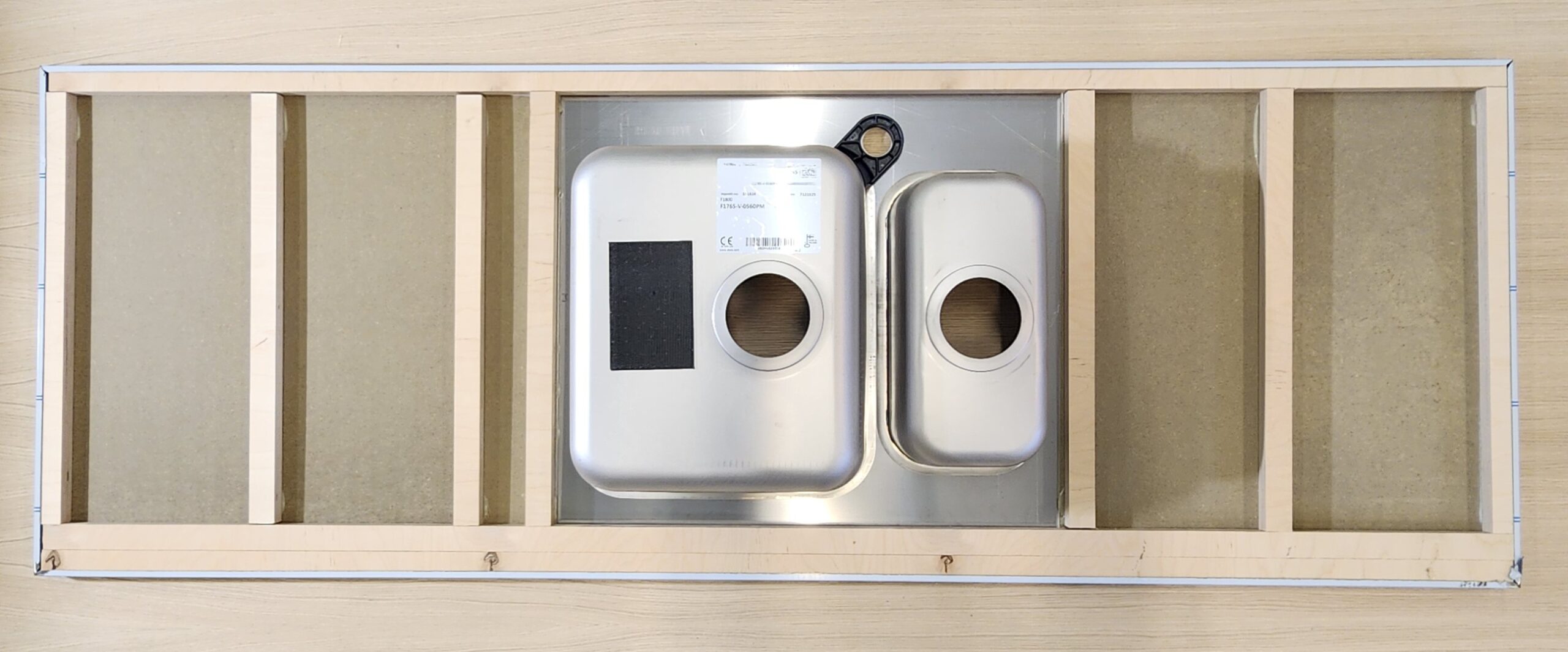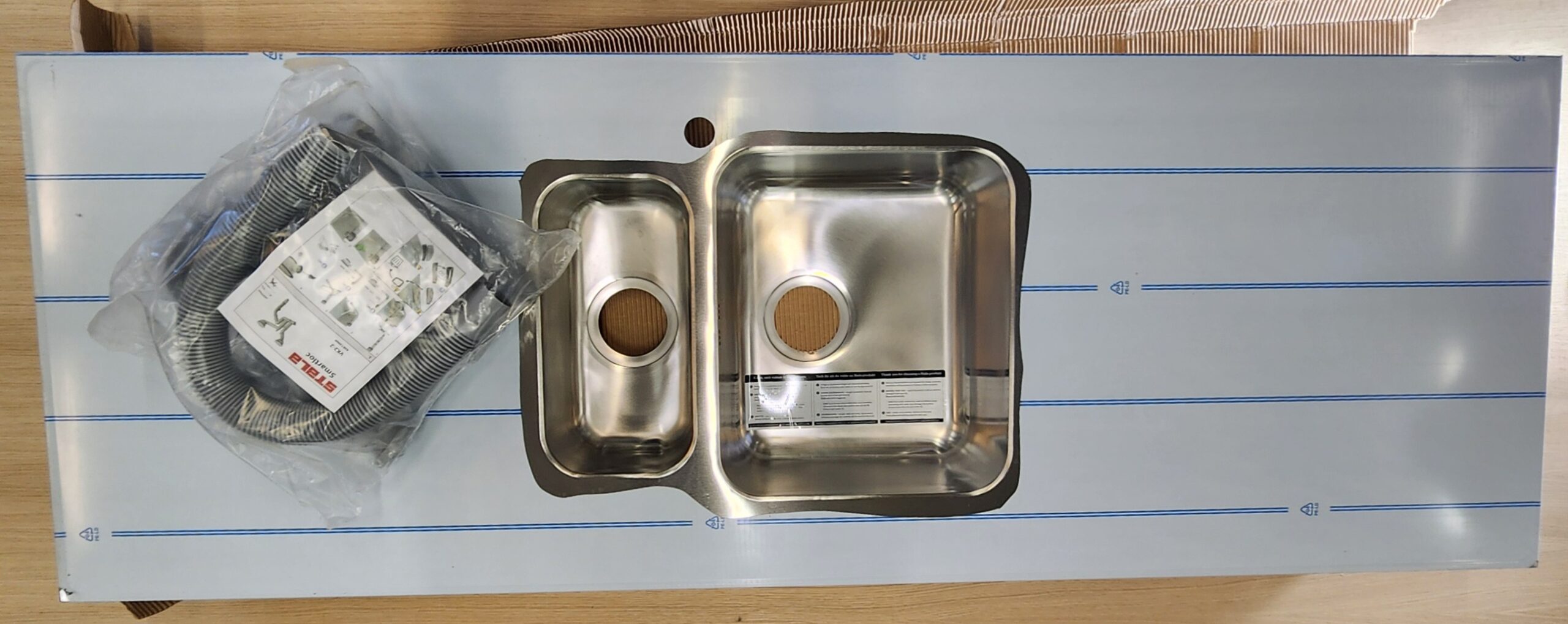 Kuvissa tiskipöydän teräspintaa peittää suojakalvo.