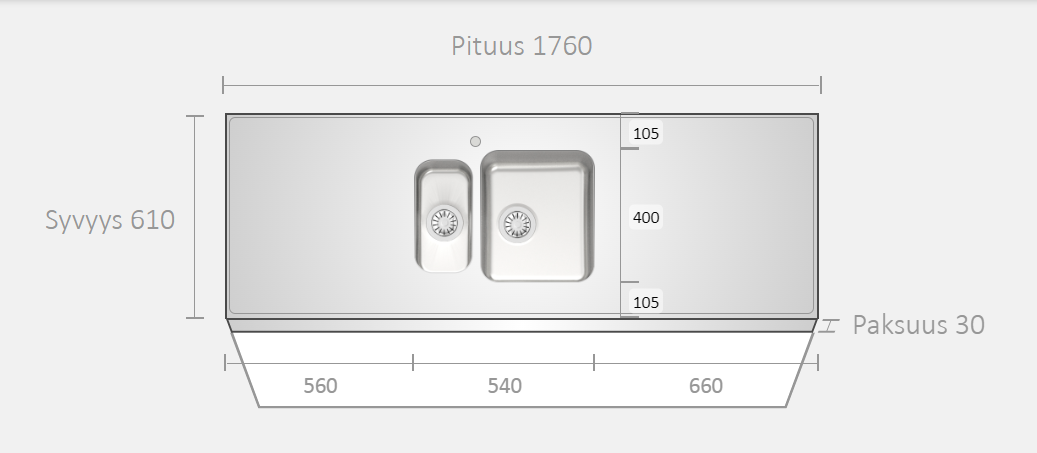 Tiskipöytätaso 1,5 altaalla
