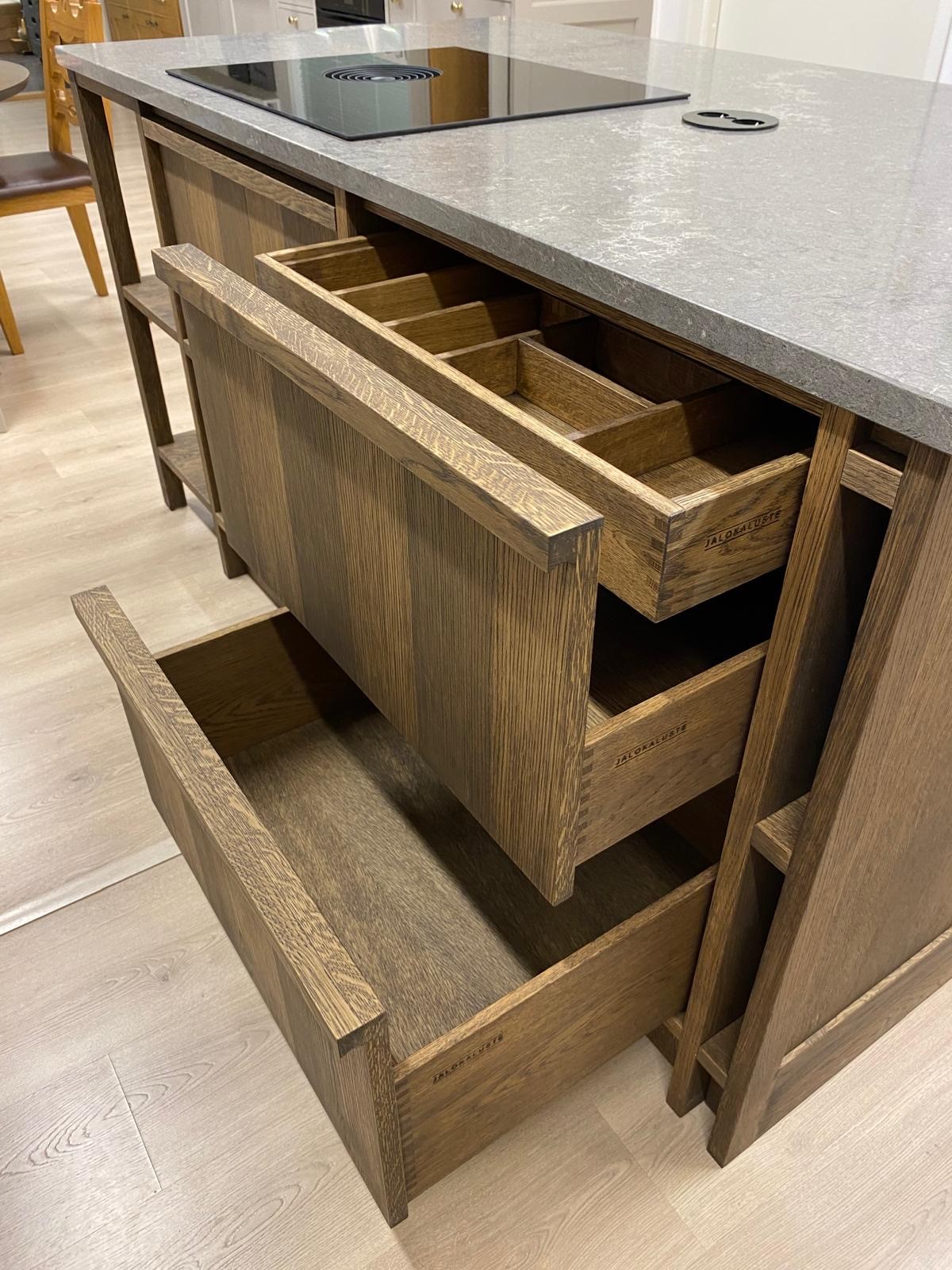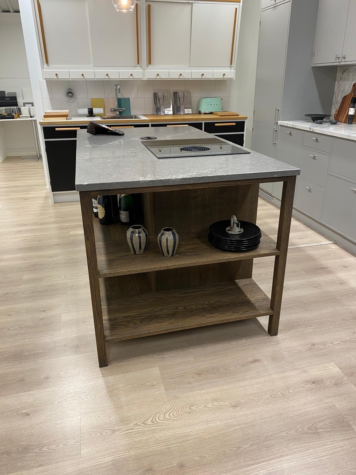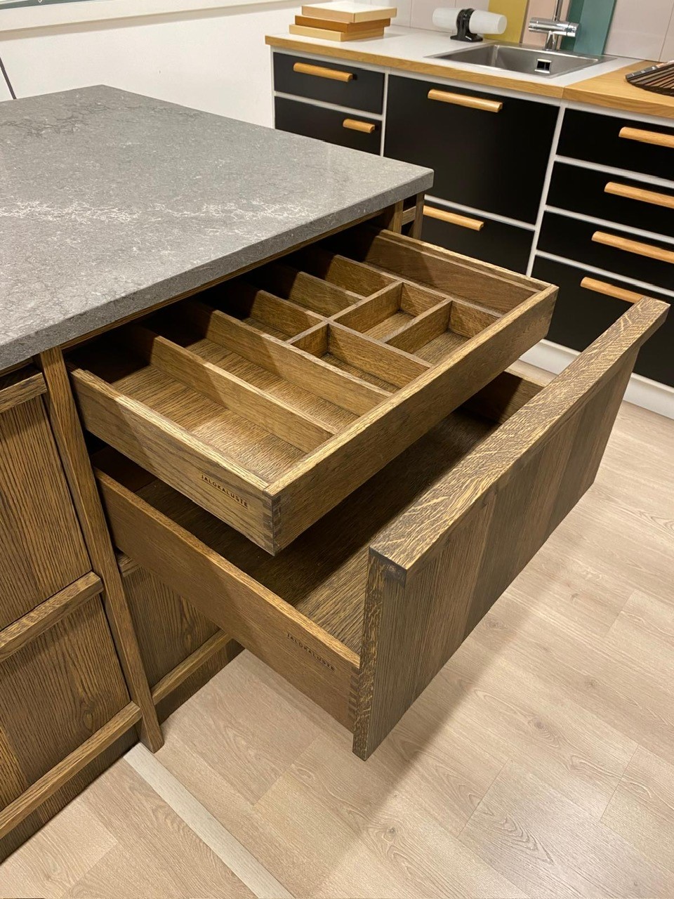 Keväällä 2025 valmistunut uusi saareke Nykyajan mallistosta! Saman mallinen kuin Habitare sisustusmessuilla 2025 ollut saareke, noin 40cm kapeampana. Saarekkeessa massiivipuurunko ja tammiviilutetut ovet, laatikot massiivitammipuiset. Mukana myös yksi sokkelilaatikko, aterinlokerikko ja ihana avohylly-osuus.