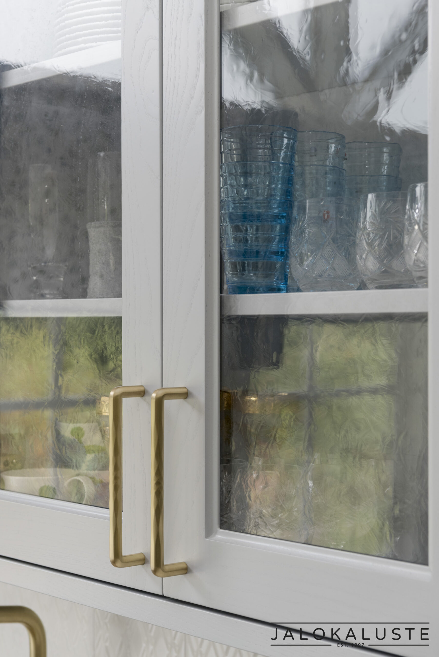 Jalokalustes Sofia kök pryder en fantastiskt vacker våning från 1900-talets början. Köket har stommar i massivträ och spegeldörrar i massivträ, som gömmer modern teknik och funktion bakom sig. Bakom pardörren finns en plats för mikrovågsugnen, behändigt osynlig bakom dörren, men placerad på ett bra ställe.